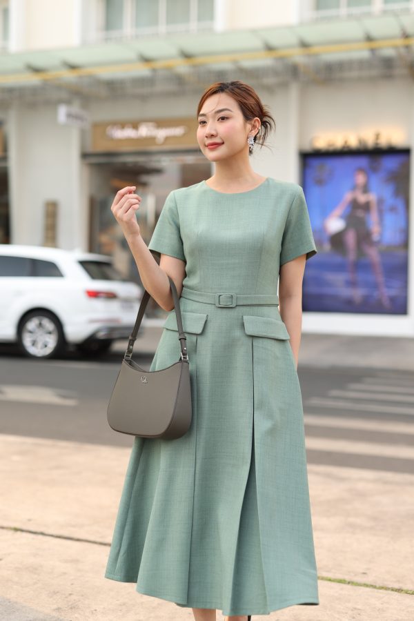 Thiết kế tối giản nhưng vẫn ấn tượng, thanh lịch, nhẹ nhàng, dáng đầm dài, chít eo tôn lên vóc dáng.
