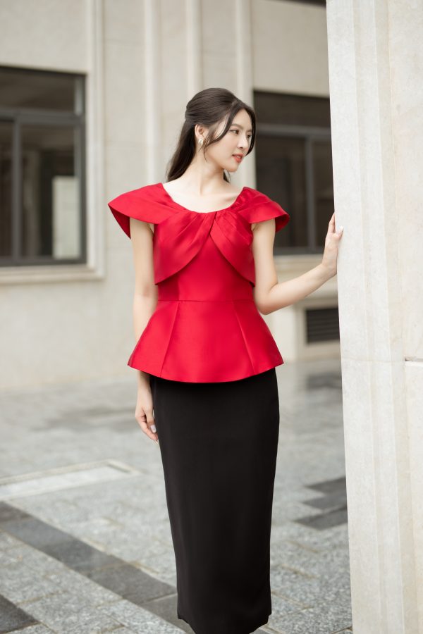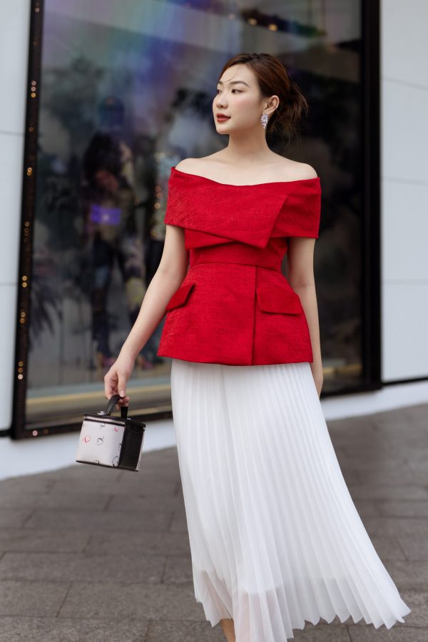 Thiết kế áo bệt vai sang trọng, thanh lịch, khoe trọn bờ vai quyến rũ nhưng không kém phần lịch sự. Chít eo lọ rõ đường cong cho Nàng .