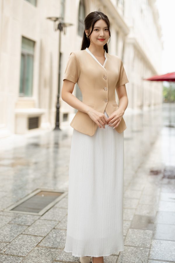 Chất liệu vải taffa, tạo nên độ ánh cho áo, thêm phần sang trọng.
