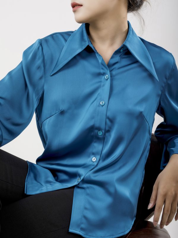 Chiếc áo sơ mi lụa màu đỏ là sự kết hợp hoàn hảo giữa vẻ đẹp truyền thống và sự sang trọng hiện đại.
