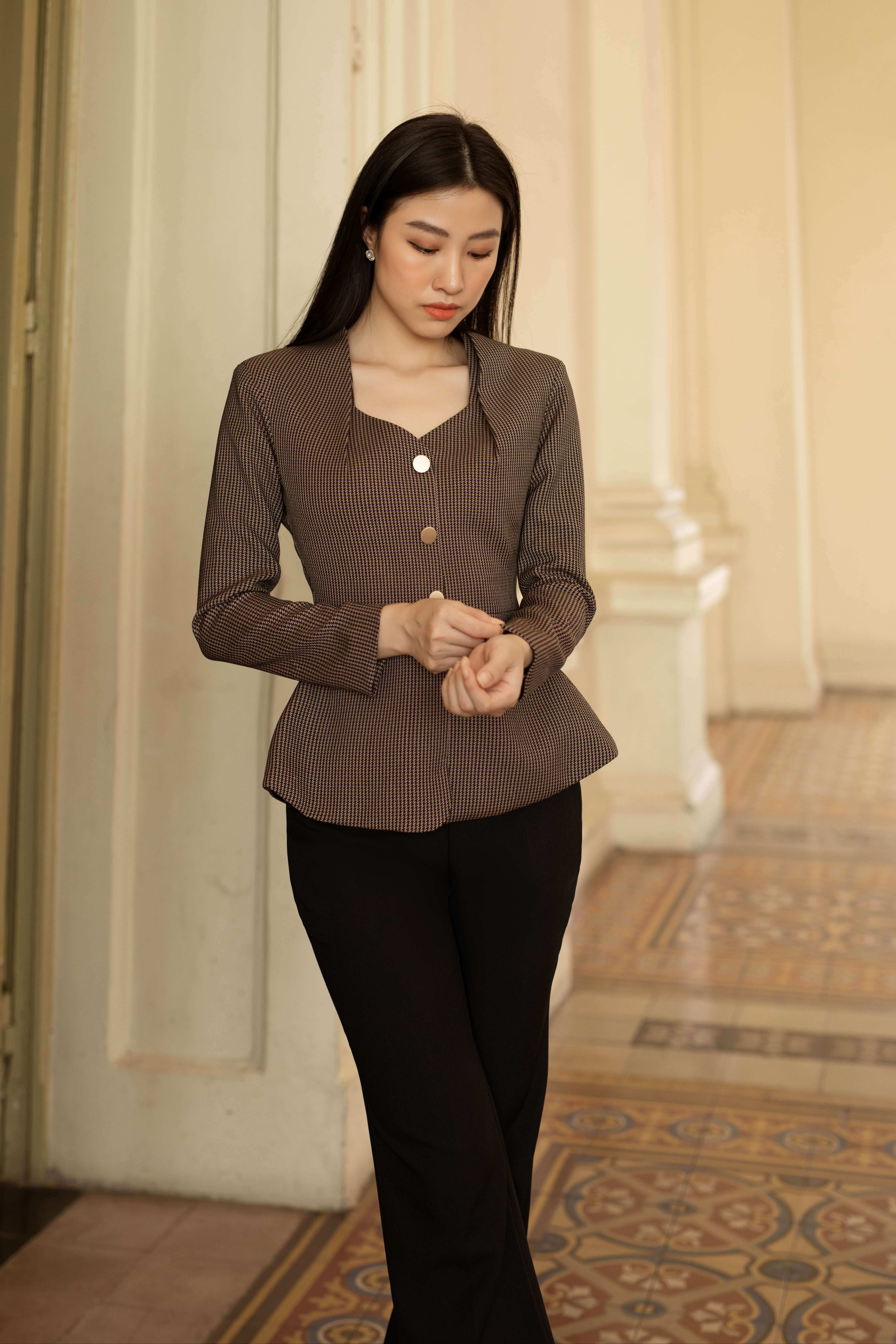 Chất liệu vải taffa, tạo nên độ ánh cho áo, thêm phần sang trọng.