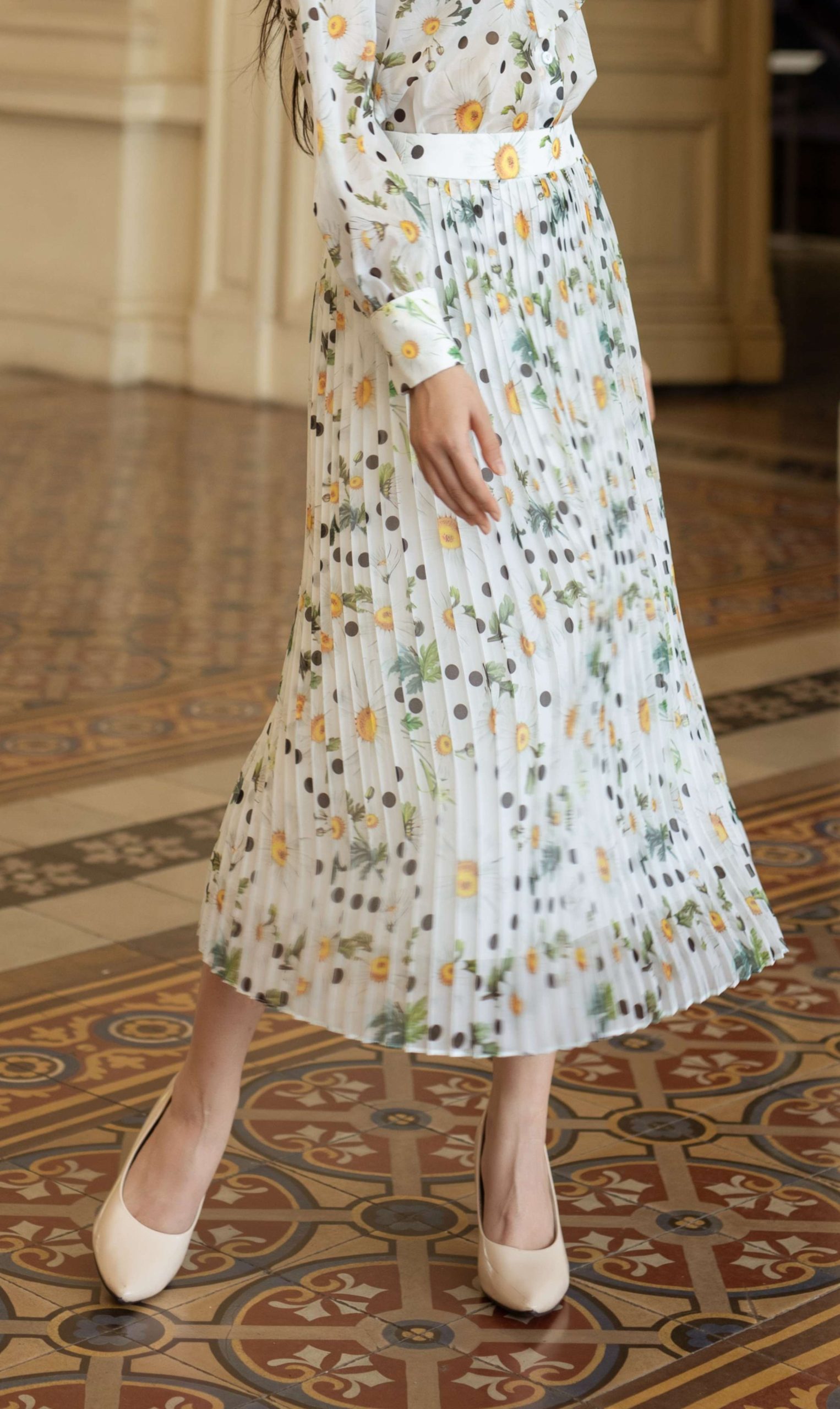 Home - Sản phẩm - Sản phẩm nổi bật - Chân Váy Voan Hoa Cúc Xếp Ly – Black