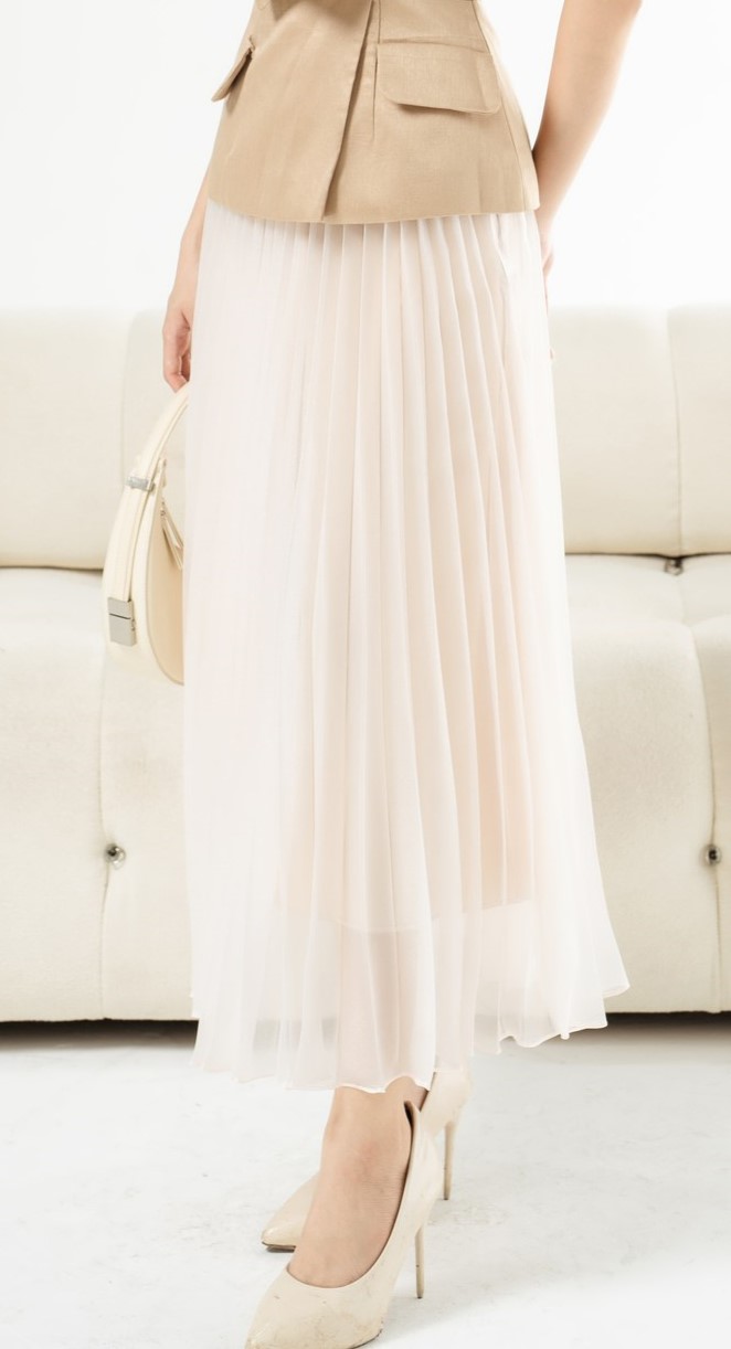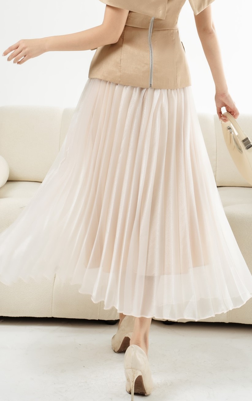 Home - Sản phẩm - Sản phẩm nổi bật - Chân Váy Voan Xếp Ly – Nude