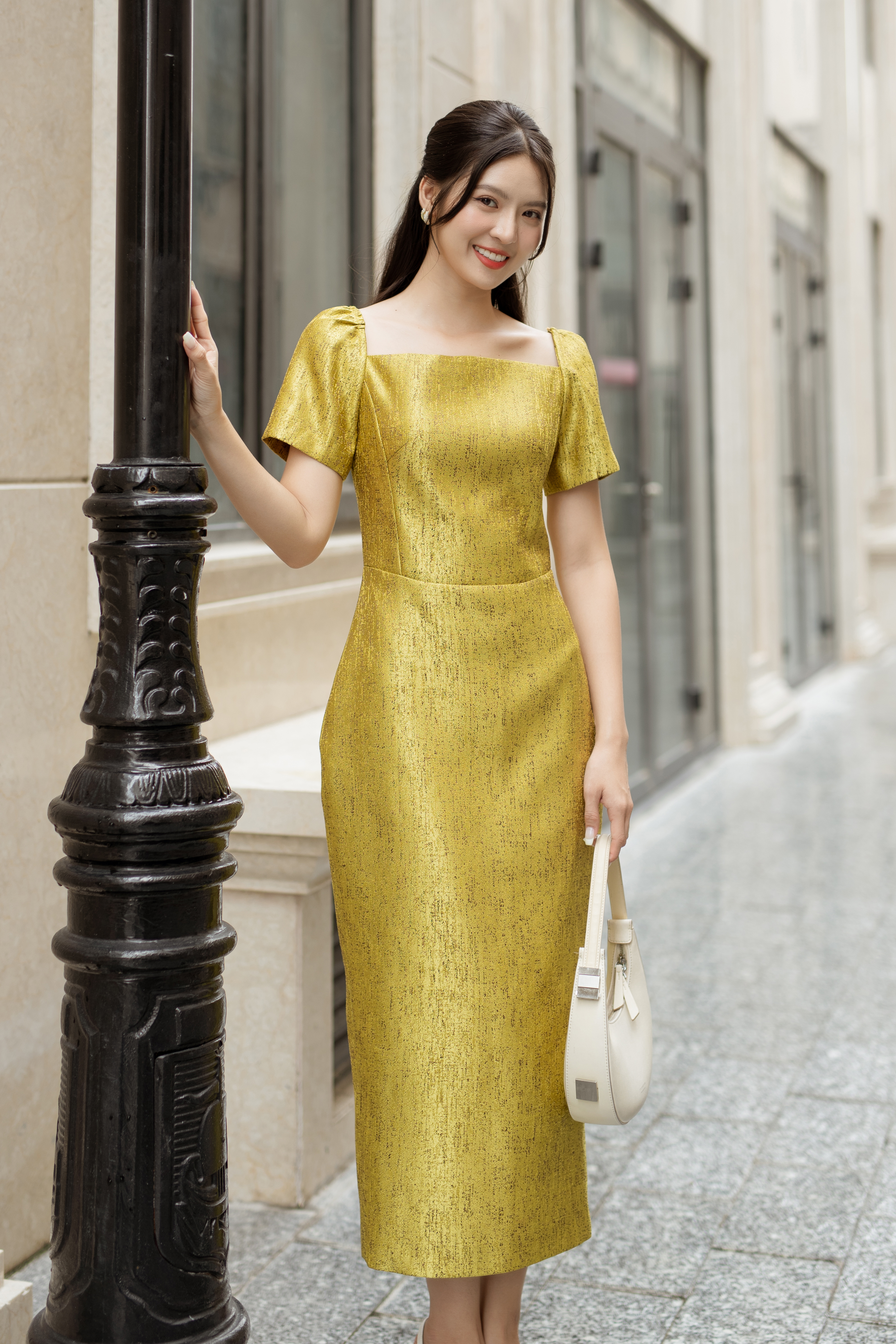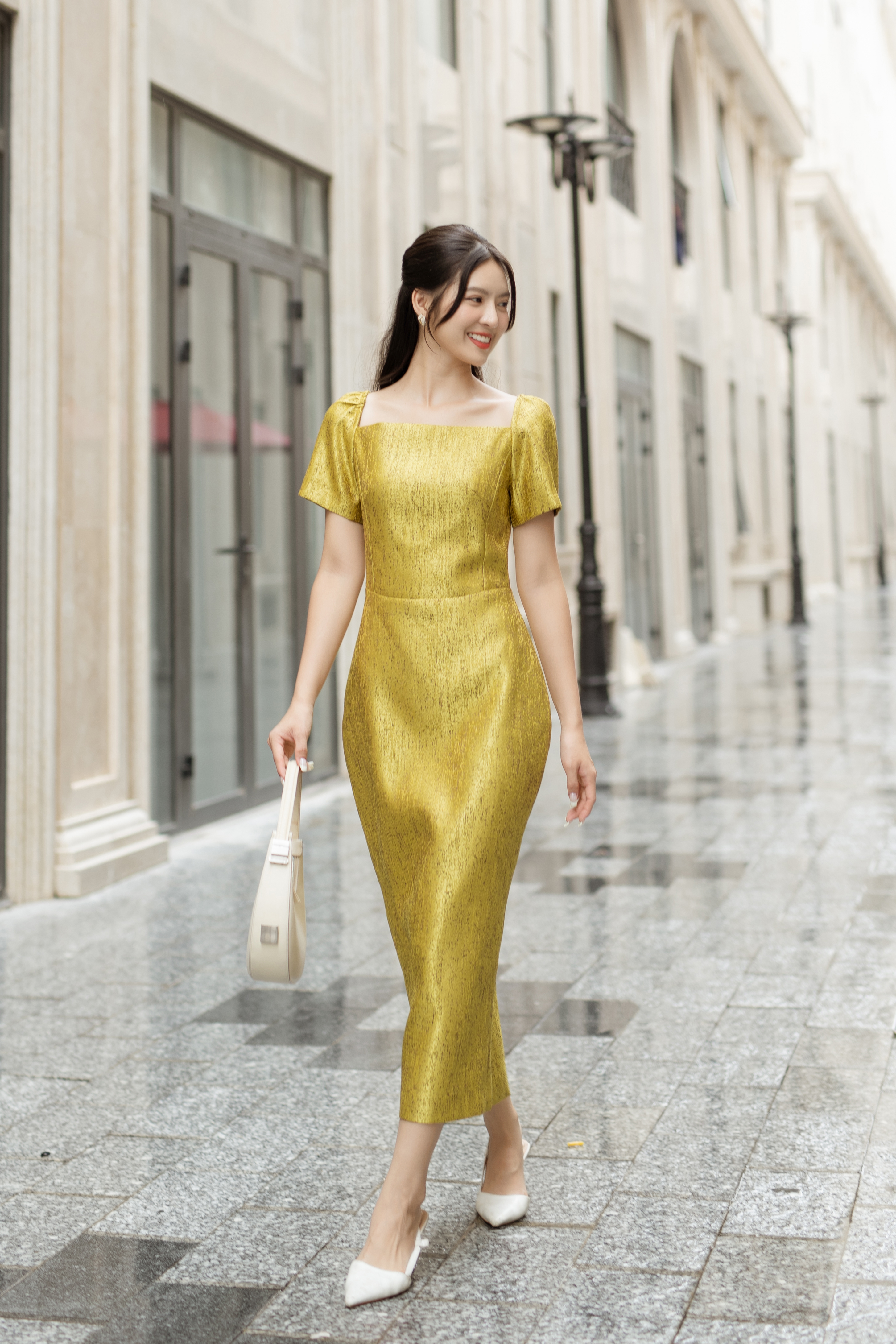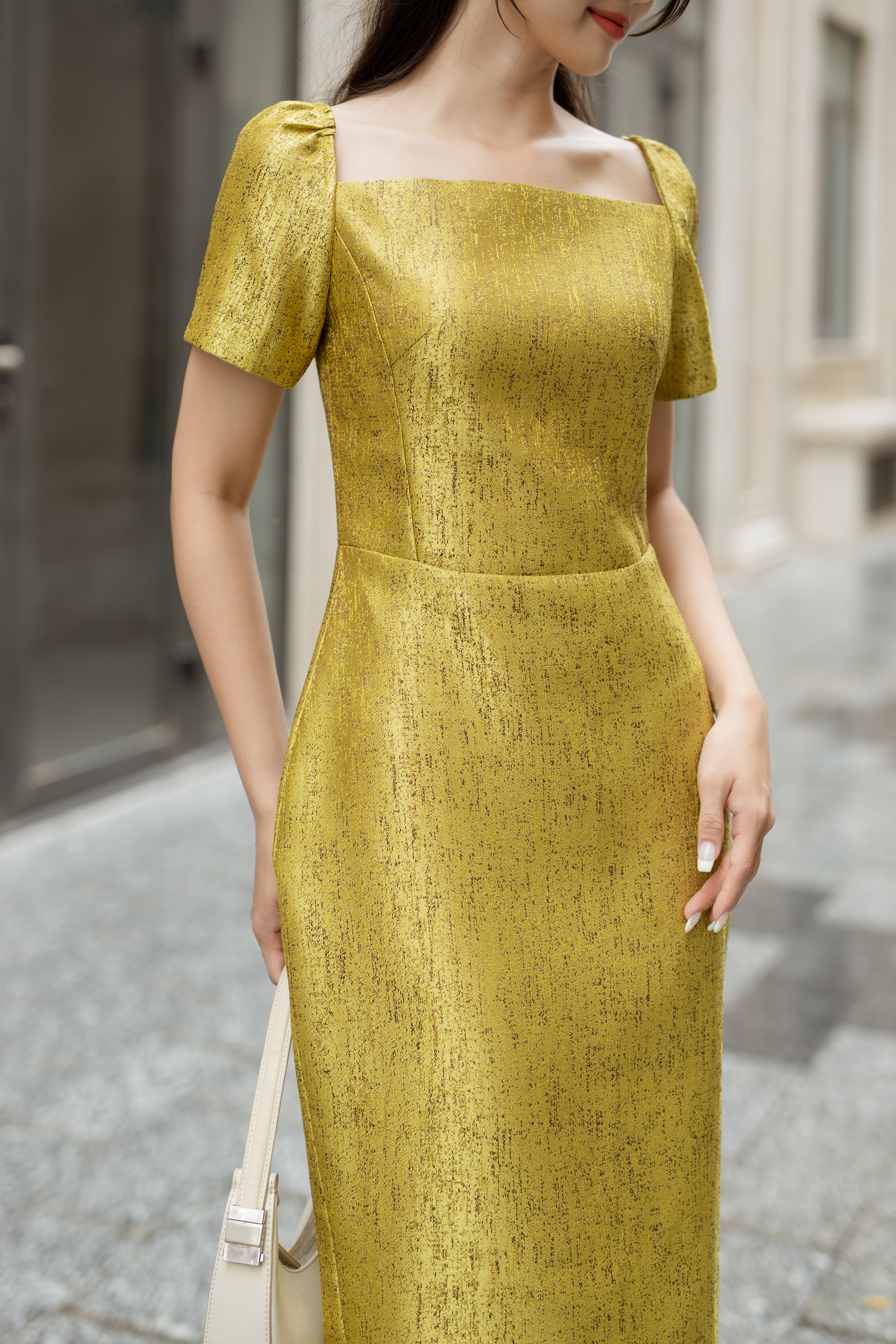Home - Sản phẩm - BST BELLA - Đầm Body Cổ Vuông – Yellow