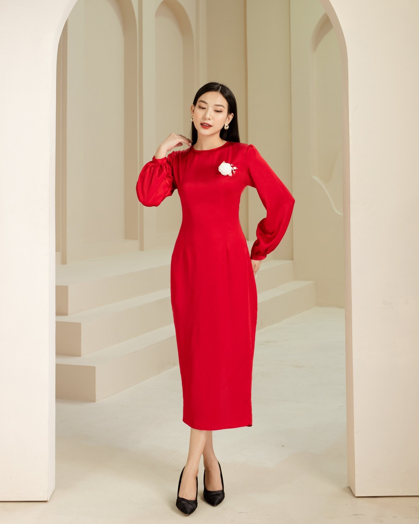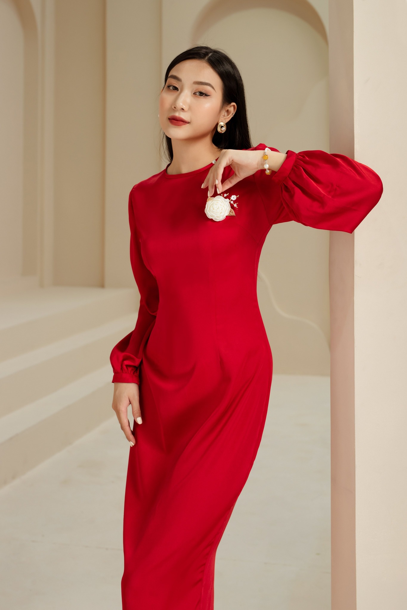 Home - Sản phẩm - BST CELINA - Đầm Lụa Tay Dài – Red